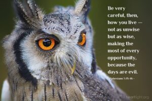 Verse of the Day – Ephesians 5:15-16 Be very careful, then, how you live — not as unwise but as wise, making the most of every opportunity, because the days are evil. Read More »
