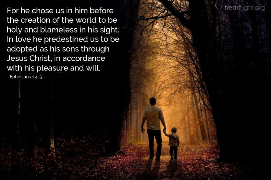 For he chose us in him before the creation of the world to be holy and blameless in his sight. In love he predestined us to be adopted as his sons through Jesus Christ, in accordance with his pleasure and will.