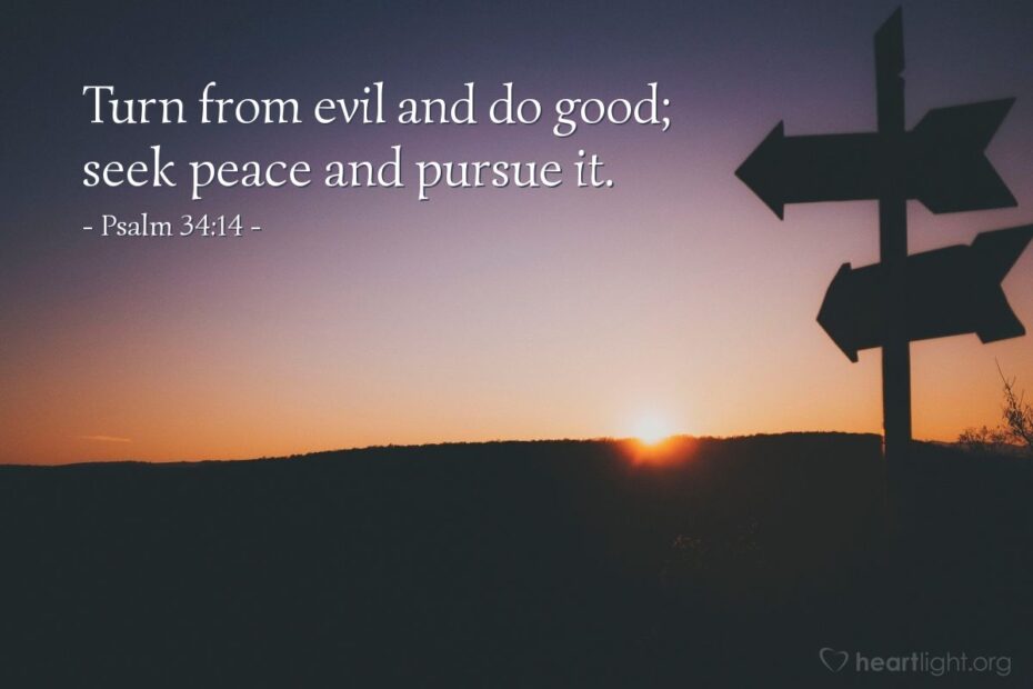 Turn from evil and do good; seek peace and pursue it. —Psalm 34:14 Thoughts on Today’s Verse… It is not enough to turn from evil.… Read More »Verse of the Day – Psalm 34:14