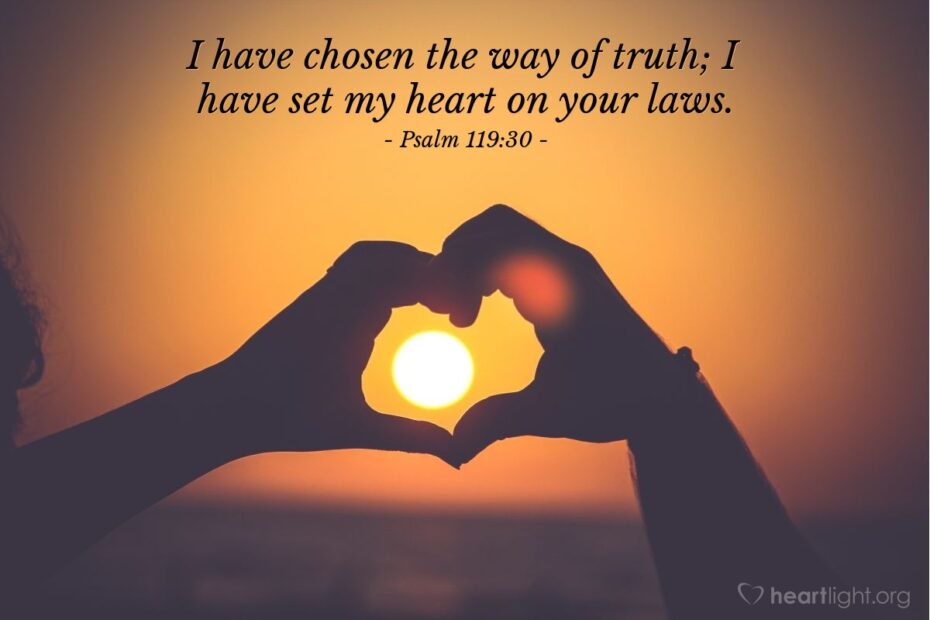 I have chosen the way of truth; I have set my heart on your laws. —Psalm 119:30 Thoughts on Today’s Verse… Yesterday we committed to… Read More »Verse of the Day – Psalm 119:30