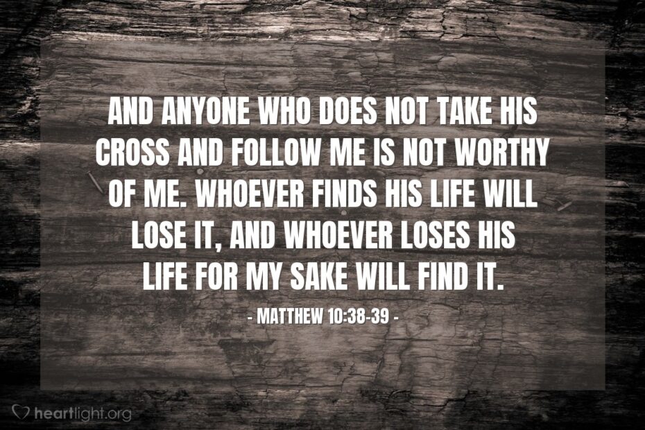 And anyone who does not take his cross and follow me is not worthy of me. Whoever finds his life will lose it, and whoever… Read More »Verse of the Day – Matthew 10:38-39