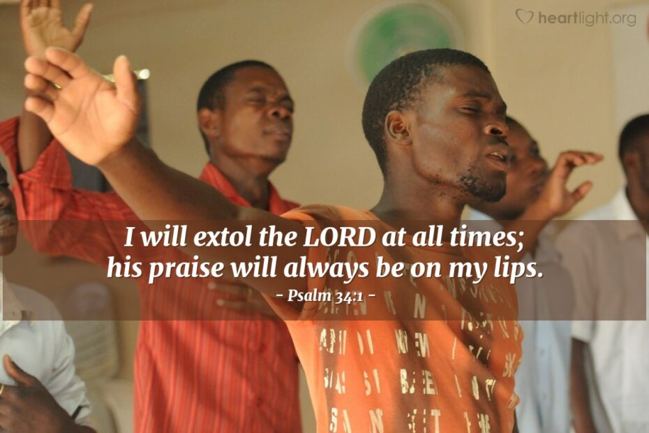 I will extol the LORD at all times; his praise will always be on my lips. —Psalm 34:1 Thoughts on Today’s Verse… One way to… Read More »Verse of the Day – Psalm 34:1